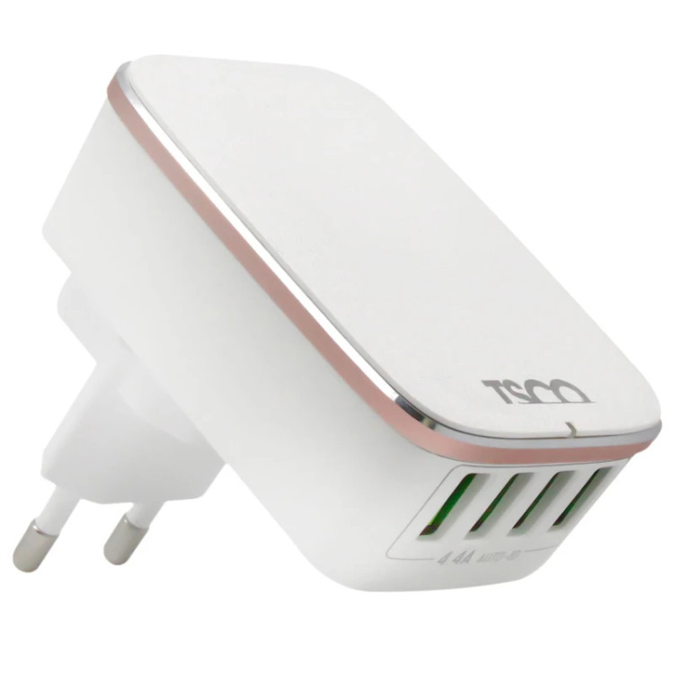 شارژر دیواری «تسکو» مدل «TTC 43» چهار درگاه خروجی USB دارد که برای اتصال و شارژ چهار دستگاه مختلف بهطور همزمان مناسب خواهد بود. این شارژر دیواری 91 گرم وزن دارد و با استفاده از پلاستیک ساخته شده است. ابعاد آن 25 × 58 × 80 میلیمتر هستند و زمانی که از آن استفاده نکنید هم فضای زیادی اشغال نخواهد شد. شدت جریان خروجی در این مدل از محصولات تسکو در مجموع 4.4 آمپر و ولتاژ خروجی در آن 5 ولت است. بنابراین این شارژر دیواری با انواع گوشیهای موبایل، دوربین دیحیتال، تبلت، آیپد، پاور بانک، هدست بلوتوث و دیگر لوازم از این قبیل سازگار خواهد بود. همچنین ولتاژ ورودی در این شارژر 100 تا 240 ولت و شدت جریان ورودی در آن 800 میلیآمپر ساعت است. بنابراین برای استفاده از این شارژر، کافی است آن را با استفاده از دو شاخه، به طور مستقیم به پریز برق متصل کنید. سپس باید گوشی موبایل، دوربین دیجیتال، تبلت، هدست بلوتوث، آیپد، پاور بانک و دیگر لوازم از این قبیل خود را با کمک یک کابل USB سازگار با دستگاه به یکی از درگاههای خروجی متصل کرده و منتظر بمانید تا باتری آن به طور کامل شارژ شود. توجه داشته باشید که دو شاخهی متصل شده به این شارژر دیواری قابلیت جمع شدن درون بدنه را دارد و تنها با استفاده از تبدیل موجود در بستهبندی، با پریزهای برق در ایران سازگاری خواهد داشت.