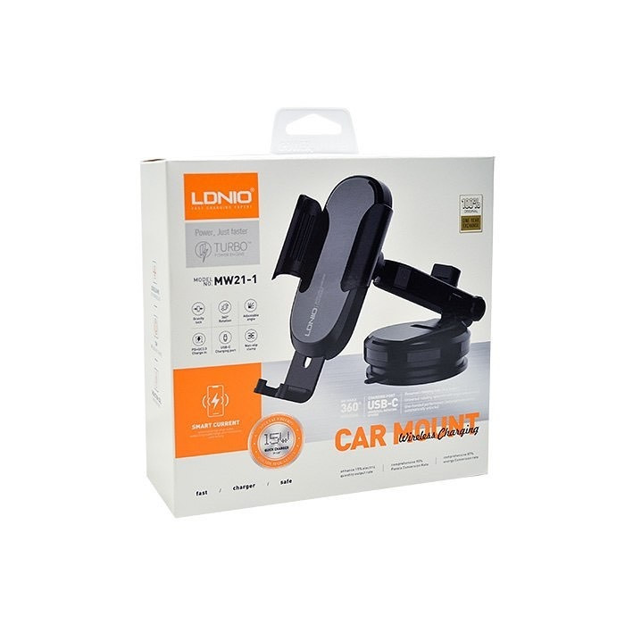پد هولدر و شارژر وایرلس LDNIO MW21-1 مجهز به شارژر وایرلس بوده و این امر باعث شده تا شما بتوانید گوشی خود را در حالت استند شارژ کنید؛ البته این نکته قابل ذکر بوده که گوشی شما باید از فناوری شارژ وایرلس (QI) پشتیبانی کند. این هولدر مجهز به شارژر بی سیم سریع با توان حداکثر 15 وات است که در استفاده موثر و راحت تر از گوشی حین رانندگی نقش به سزایی دارد. در قسمت پایینی هولدر، درگاه تاپ سی (USB-C) برای اتصال هولدر به شارژر فندکی جهت تامین انرژی وجود دارد.